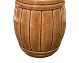 A sturdy ceramic mug with a barrel design for a rustic aesthetic. Great for beverages or as a decorative piece.
