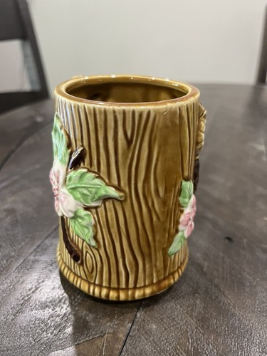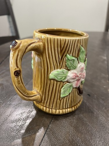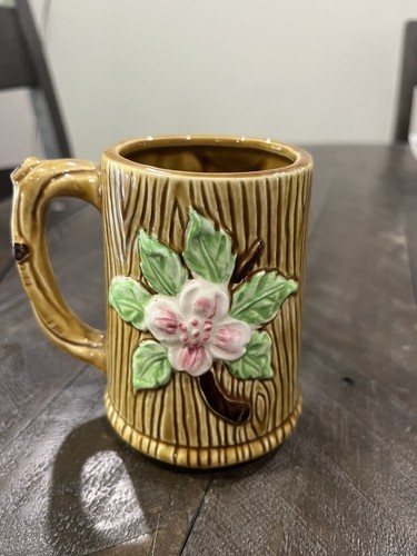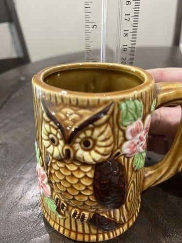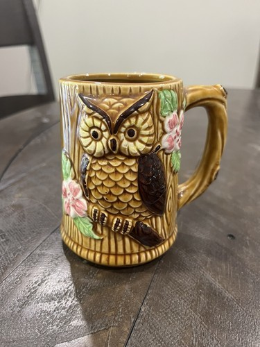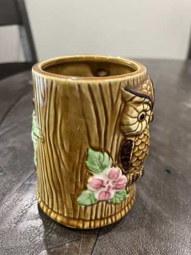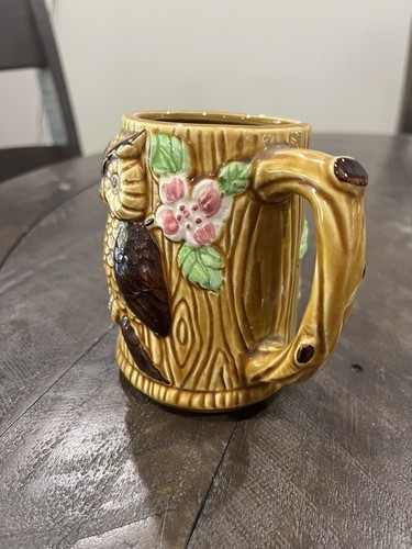 - Vintage Owl Mug Brinns Ceramic Tree Stump 3-D Flowers