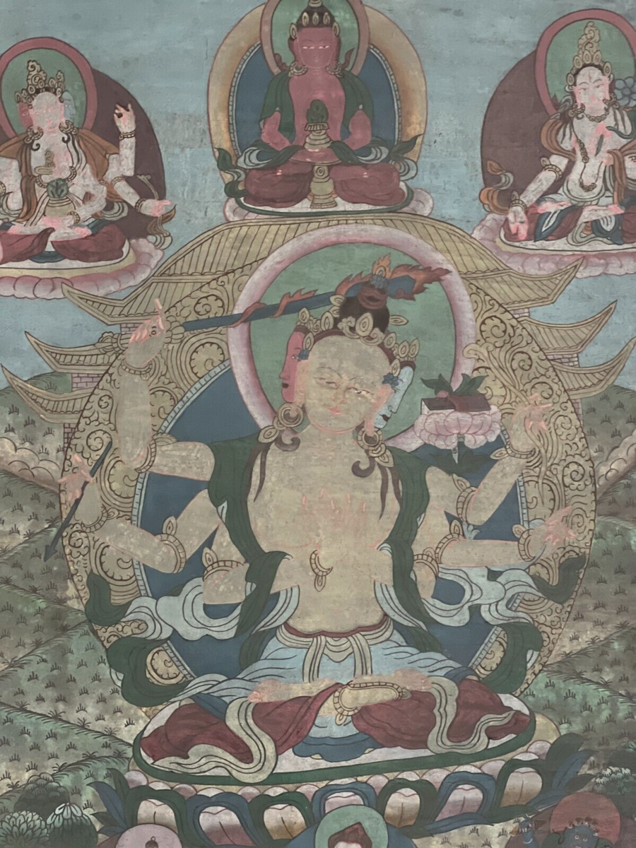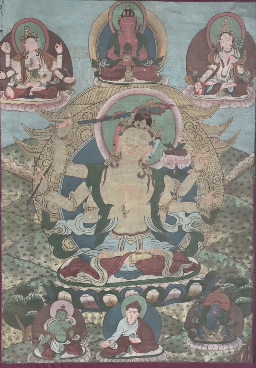 - VINTAGE PANCHA- FIVE MANJUSHRI/ MANJUSHREE ORIGINAL TIBETAN THANGKA PAINTING
