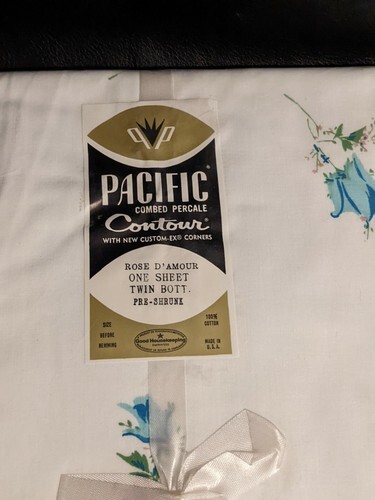 Zum Verkauf steht ein neues Vintage Pacific Twin-Spannbettlaken aus gekammter Perkal-Baumwolle Rose D'Amour Flower USA.