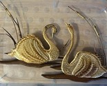 Vintage Pair Brass Tin Swans & Cattails/Grasses Wall Hanging with Wood Base
