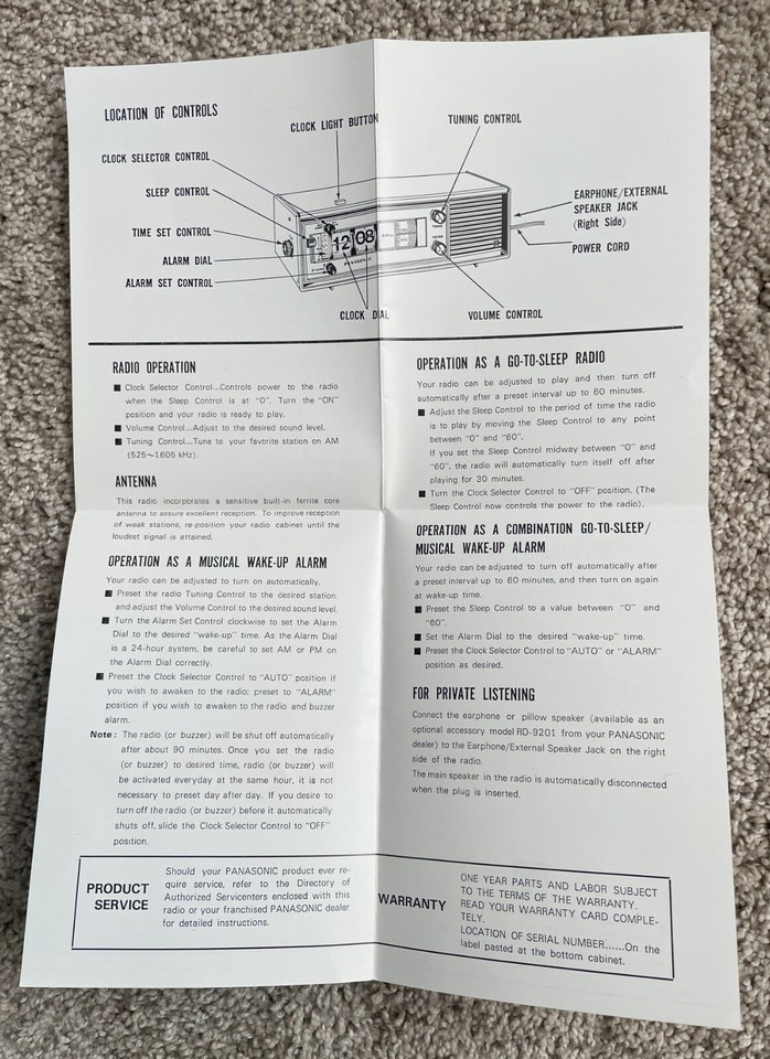 - Vintage Panasonic Operating Instructions RC-1208 AM Digital Clock Radio Alarm
