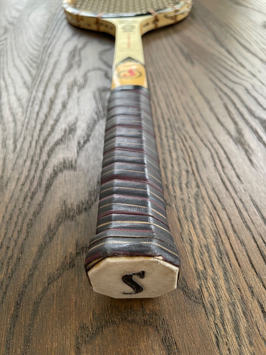 Vintage wood Spalding "Pancho Gonzales" signature model, made in Belgium. Strings still tight and in place, Grip I believe is Original and in good condition. Nice Condition for age. Great for wall Display!