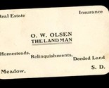 Vintage Paper Business Card OW Olsen The Landmen Homesteads Meadow South Dakota - Dates to the late 1800s - early 1900s time frame. No smoke or pet odor.