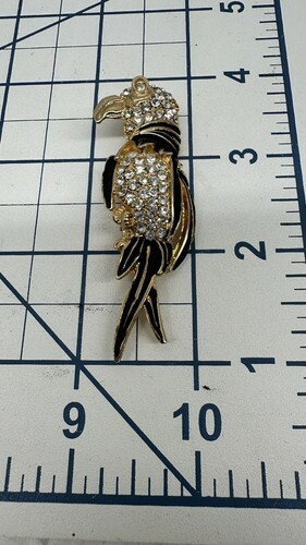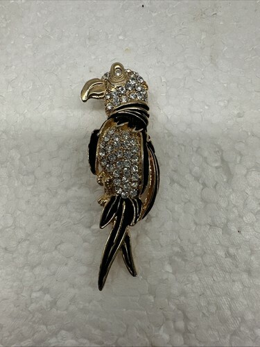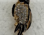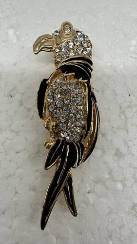 - Vintage Parrot Black Enamel Rhinestone Brooch 2.5”
