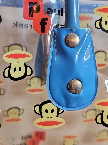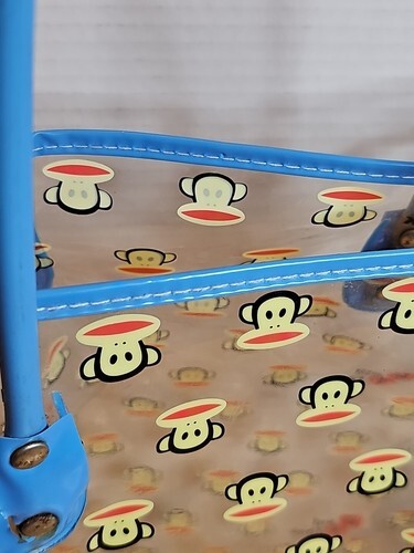 This vintage Paul Frank tote bag features the famous Julius monkey face head design on clear vinyl with blue handles. Its Y2K look makes it perfect for casual occasions. The bag is made of vinyl material and is an original piece from the late 90's early 2000's.