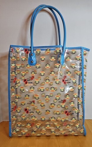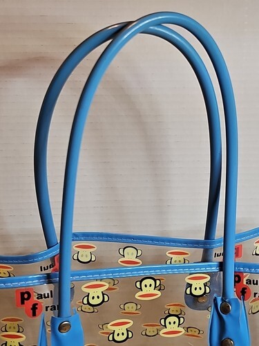 - Vintage Paul Frank Tote Bag Julius Monkey Face Head Clear Vinyl Blue Handles Y2k