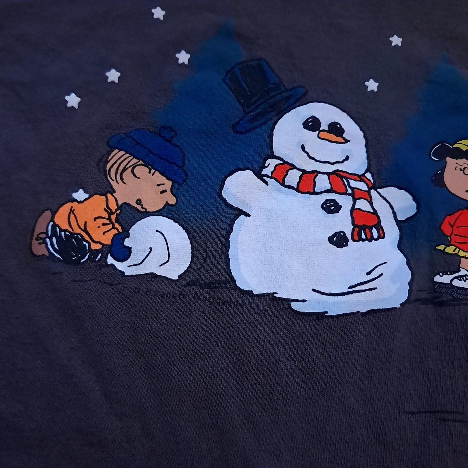Vintage Peanuts Charlie Brown Snoopy Christmas Shirt Size XL snowman Delta grey