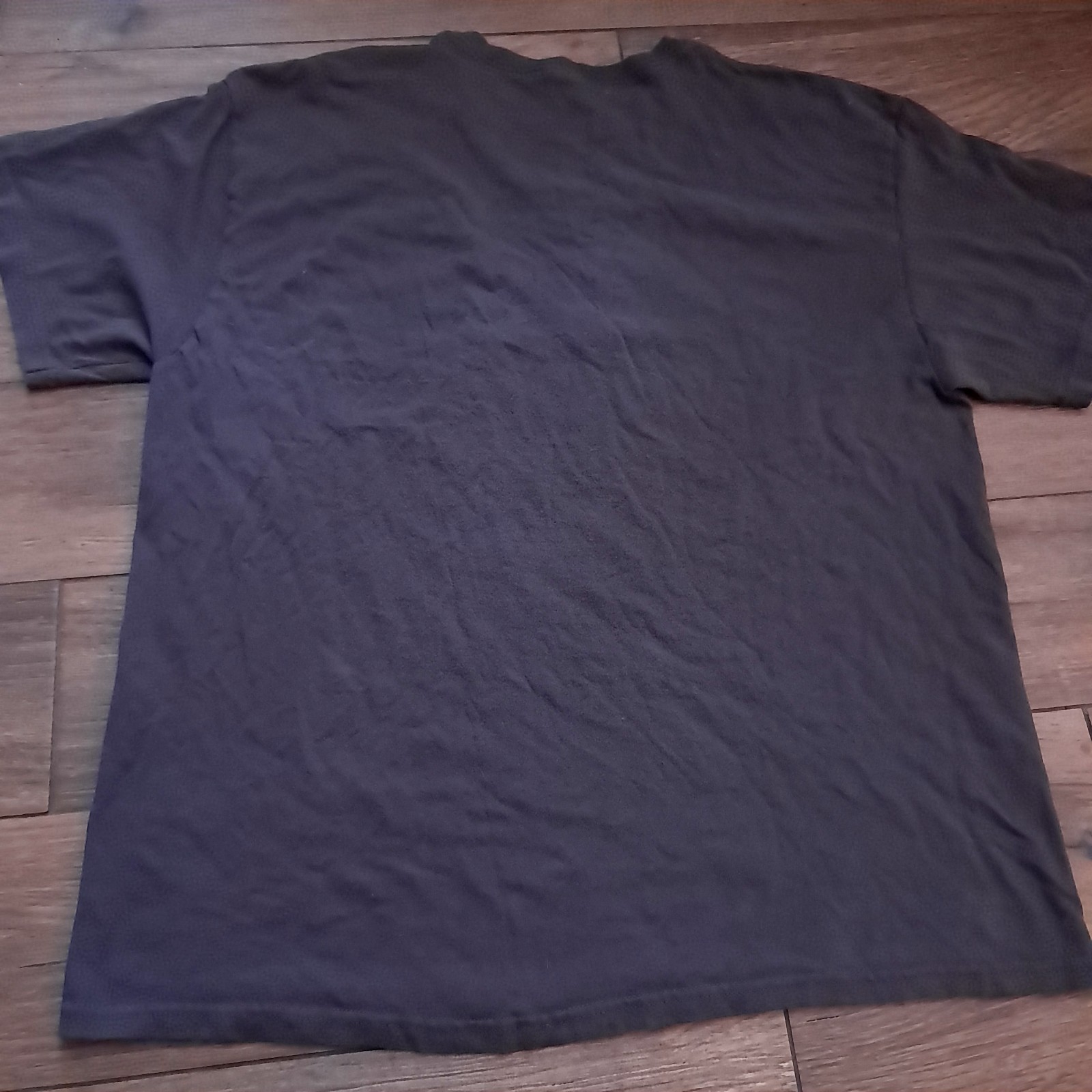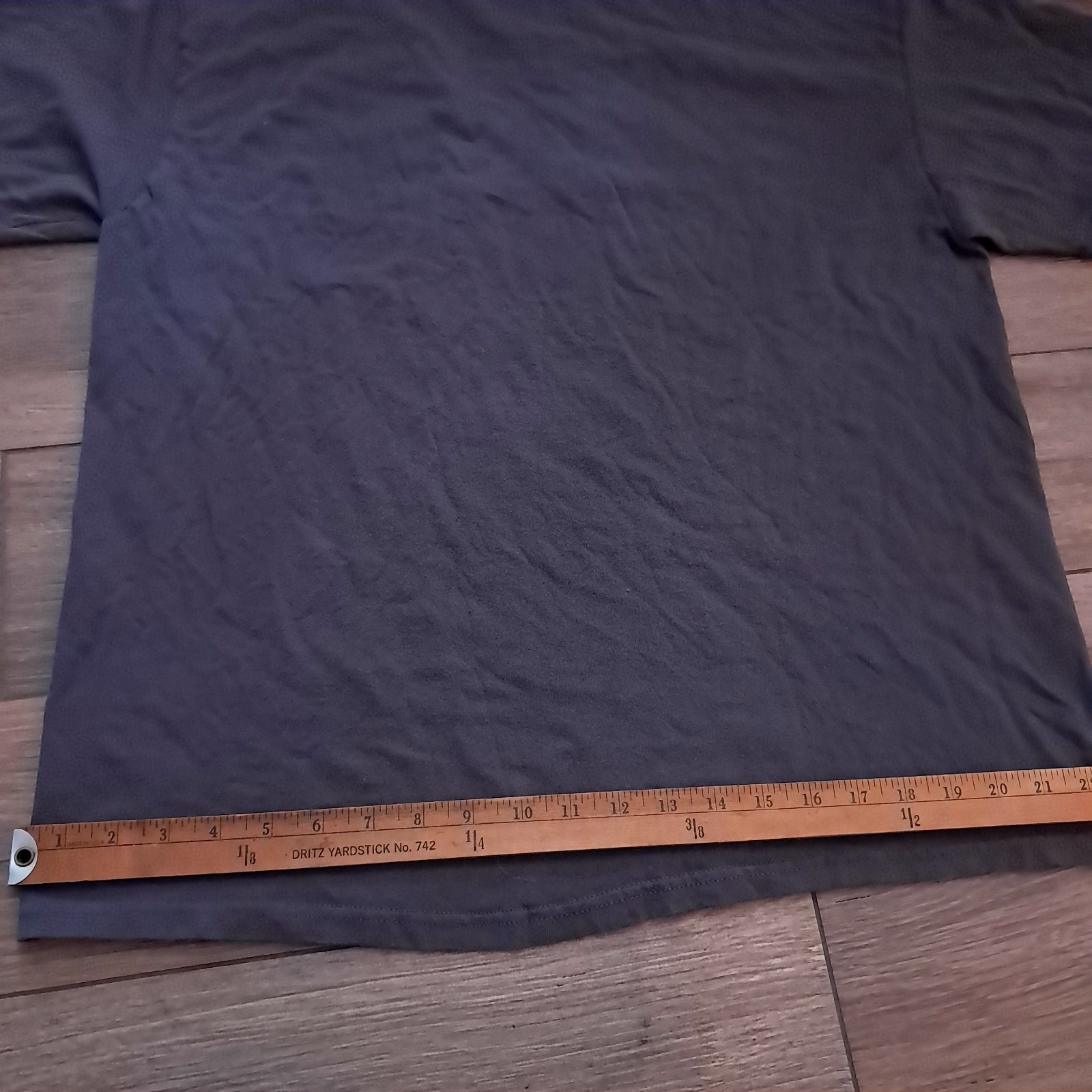 Small stain and hem line is a bit wonky as shown. Size extra large(x-large) Gray color with nice graphic print. See pics for details and measurements.