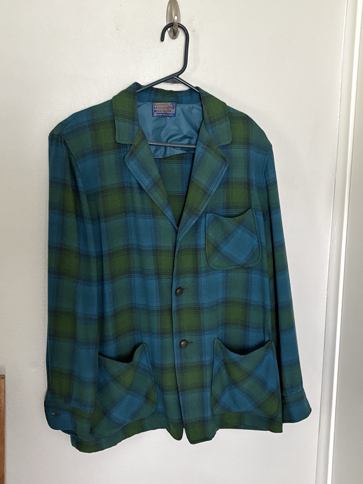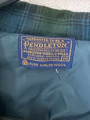 - Vintage Pendleton Plaid Green Wool Mens Mackinaw Shirt Jacket Button Up Size M