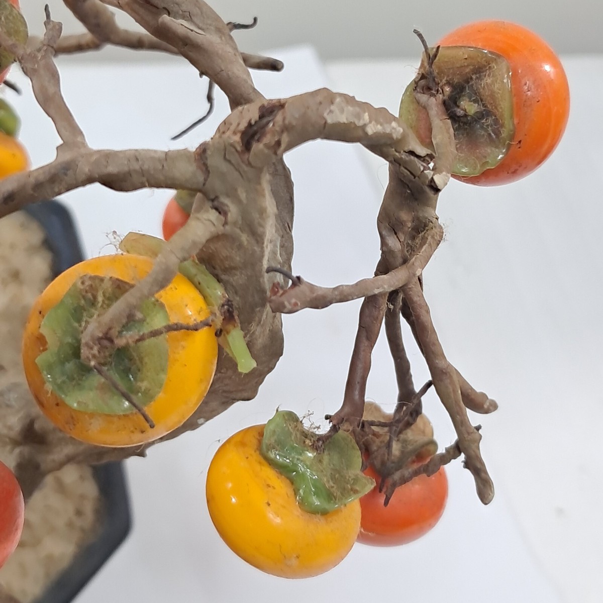 - Vintage Persimmon Plant Figurine lucky Asian Bonsi fruit Tree & Glass Orange