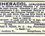 - Vintage Pharmacy Label CHERACOL (UPJOHN) Fred Hoose Rexall Store Shinglehouse PA