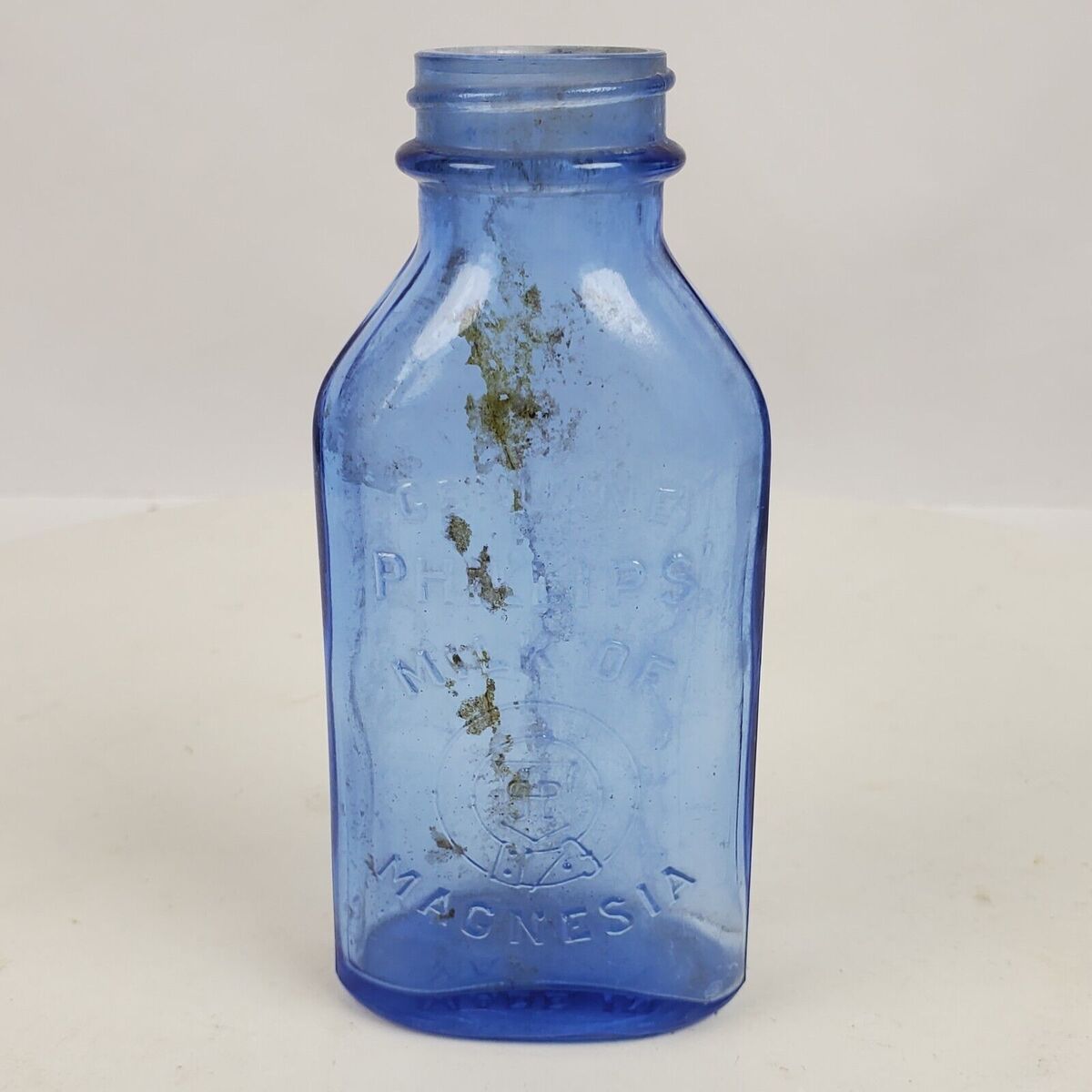 - Vintage Phillips Milk Of Magnesia Blue Bottle 5 Inch Tall