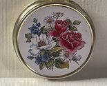 Vintage Pill Box Plastic Insert Gold Tone 2” Floral Flowers
