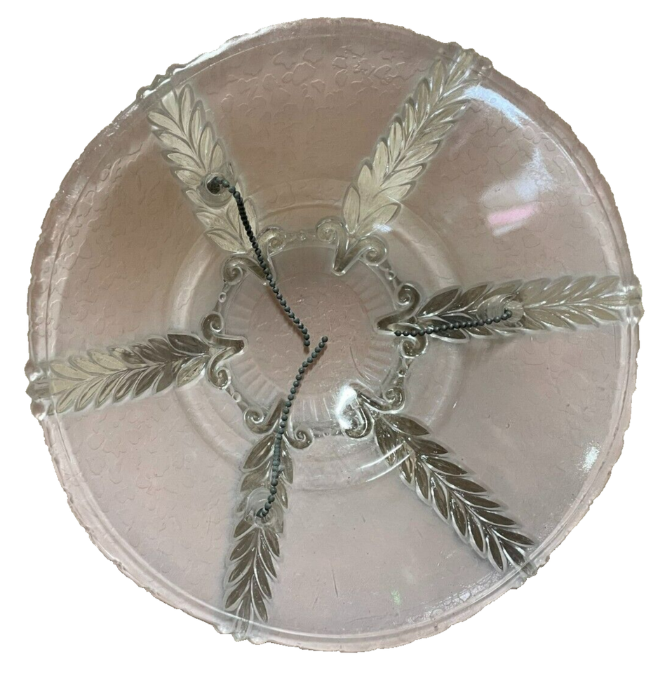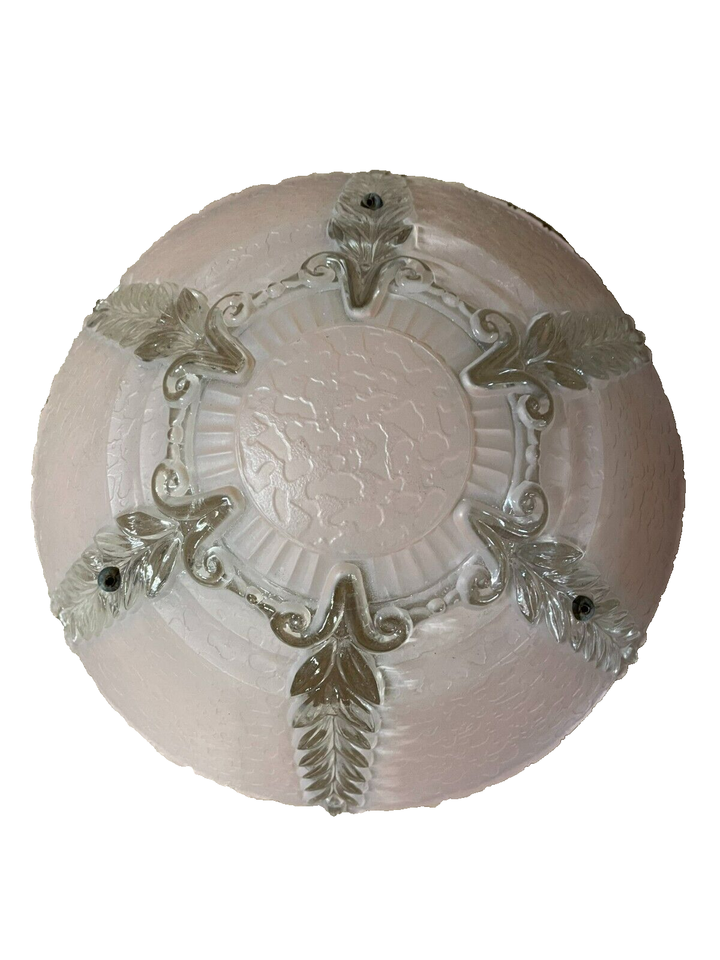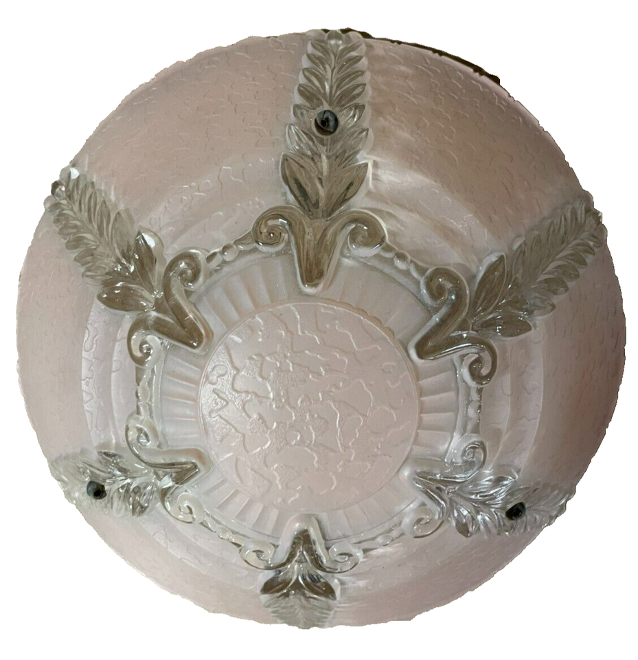 Vintage Pink Frosted Art Deco Glass 3 Chain Hanging Ceiling Light W/Hanger