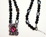 Pendant is awesome...metal with faux gems and metallic pink flowers.