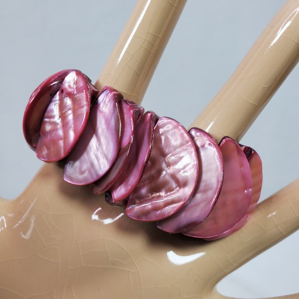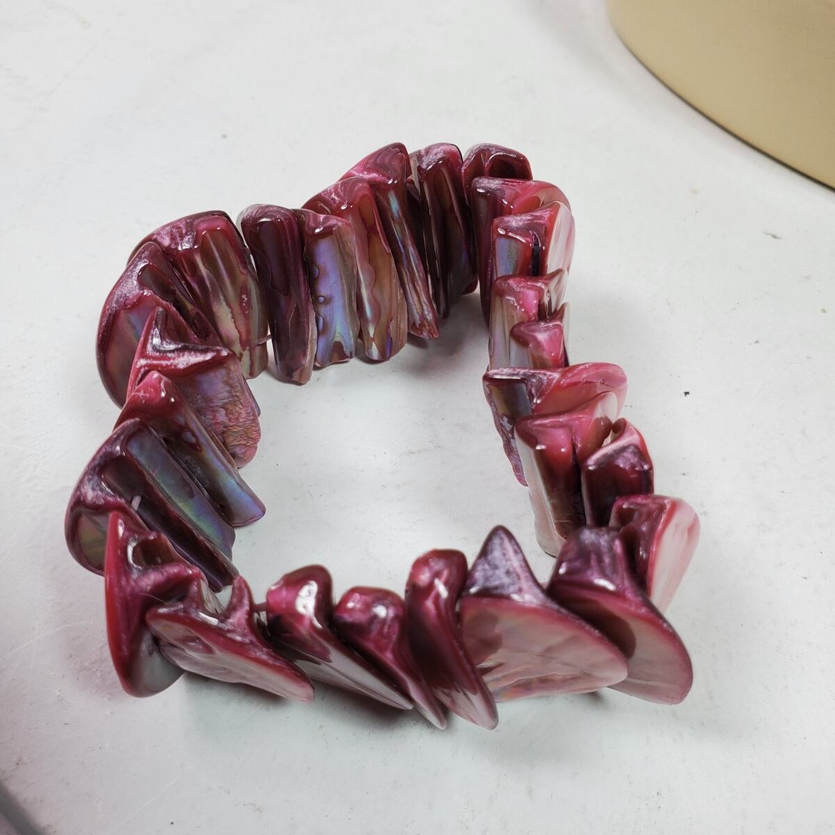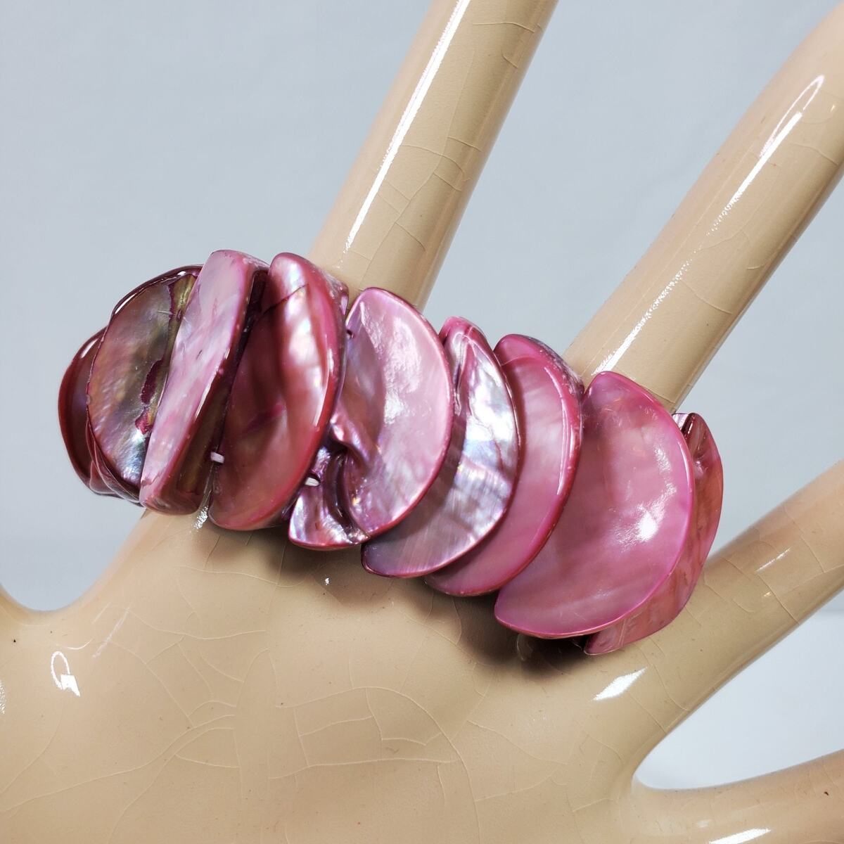- Vintage Pink Red Abalone Shell Bracelet Stretchy