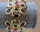 - Vintage Pink Rhinestone Gold Tone Floral Box Chain Link Bracelet 7.5"
