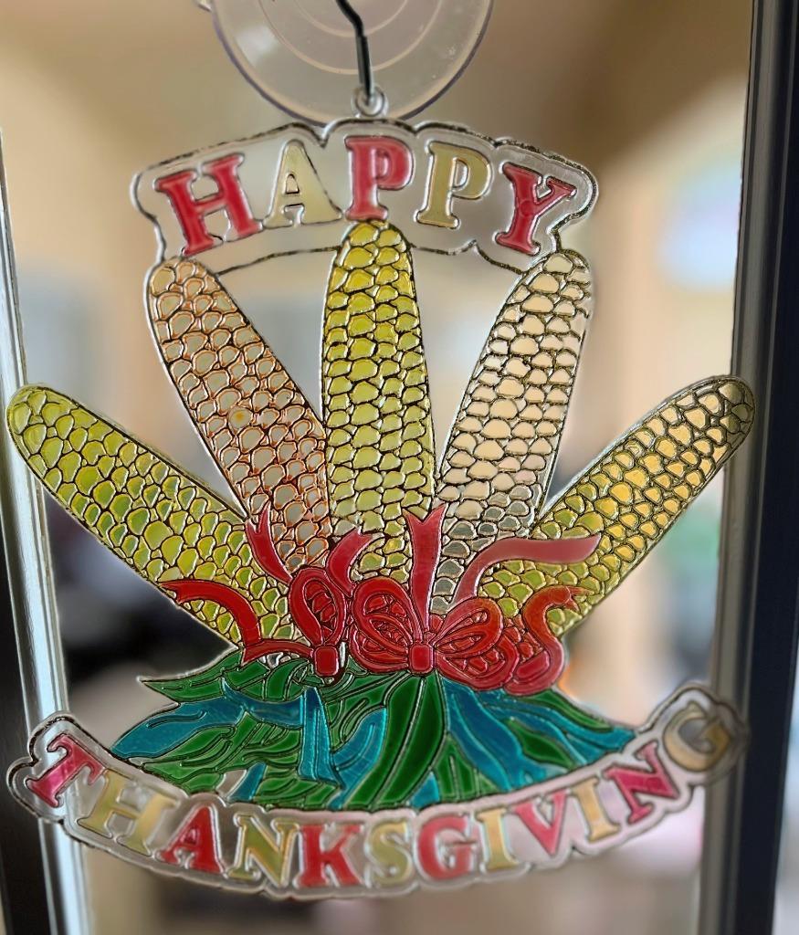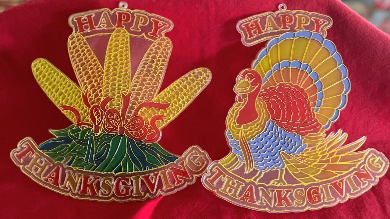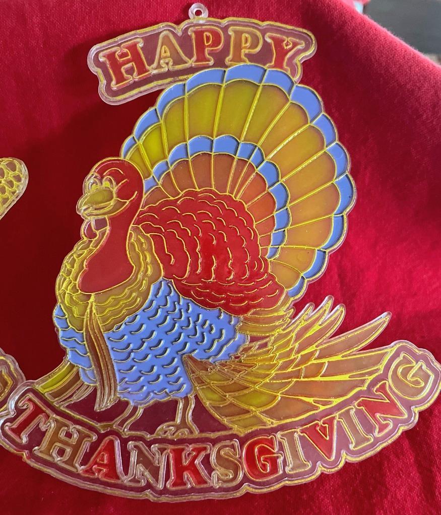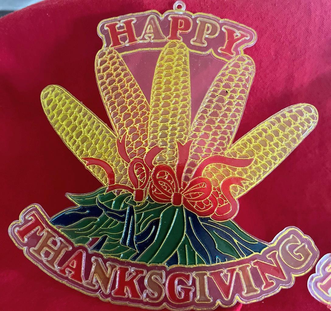 - Vintage Plastic Thanksgiving Suncatchers Turkey & Indian Corn Window Wall