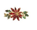 - Vintage Poinsettia Enamel Gold Tone Christmas Brooch Pin Womens Costume Jewelry