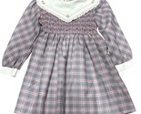 - Vintage Polly Flinders Girls Plaid Smocked Dress With Lace Collar & Bow Belt 4