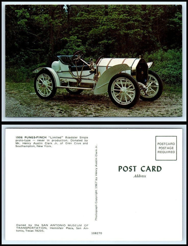 Vintage Postcard - 1906 Pungs-Finch "Limited" Roadster Car / Automobile G9