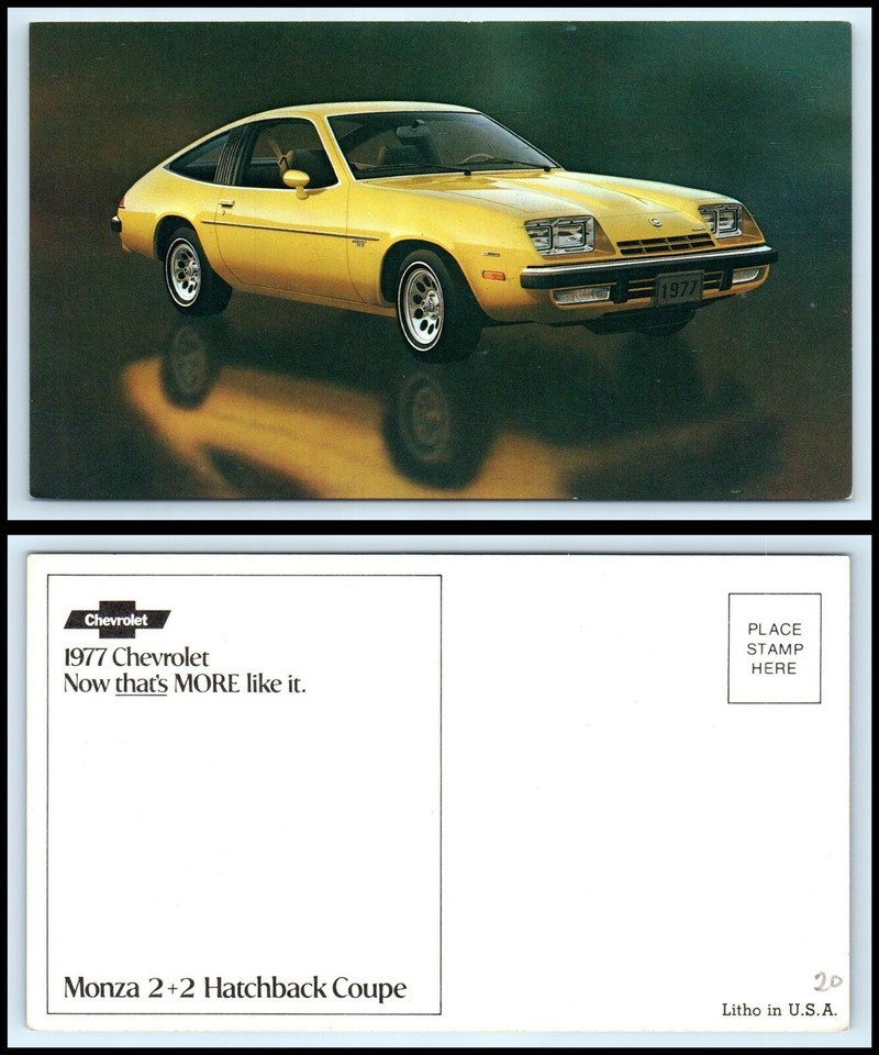 - Vintage Postcard - 1977 Chevrolet Monza 2+2 Hatchback Coupe Car / Automobile M8