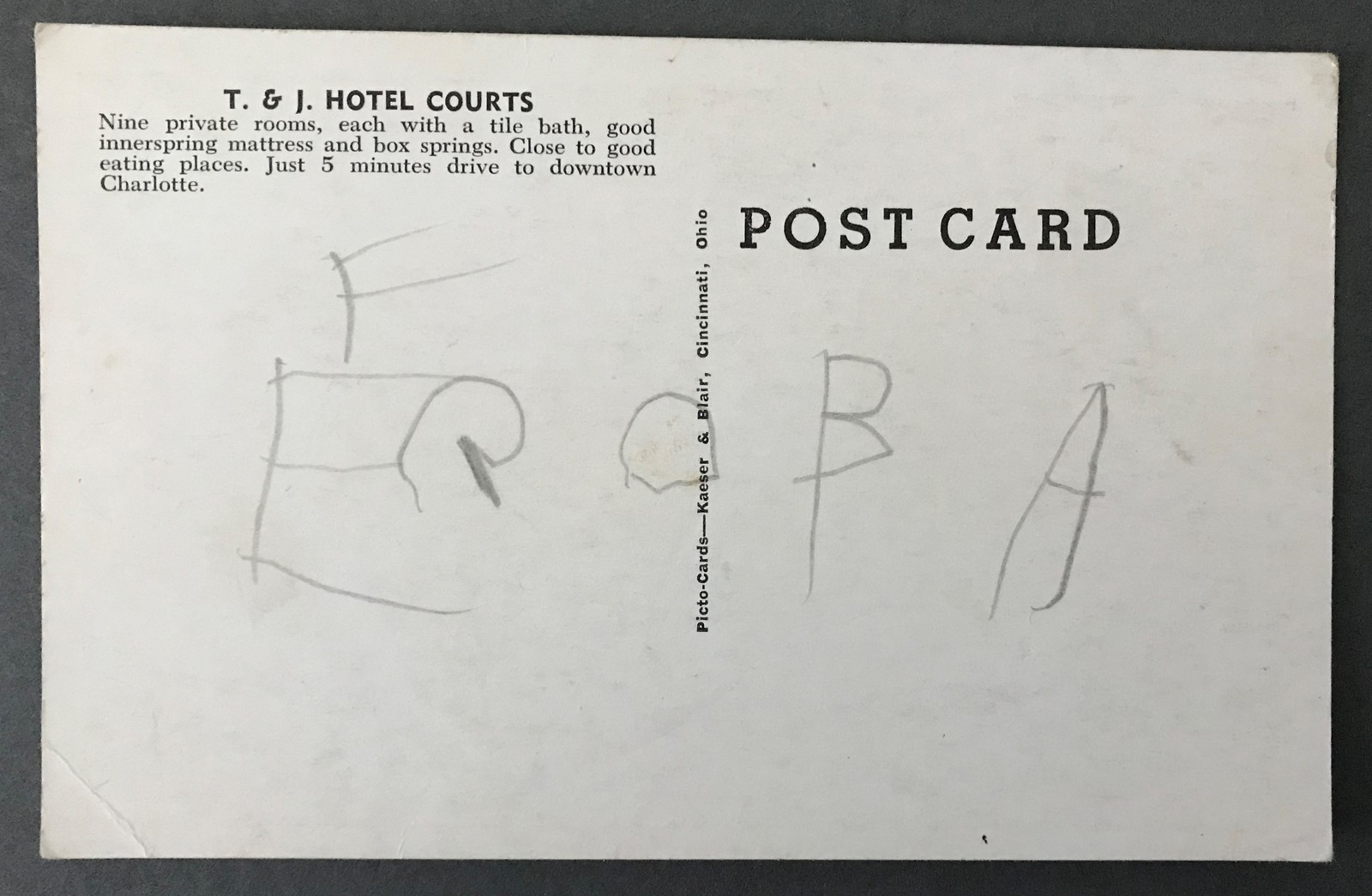 - Vintage Postcard B&W RPPC - T&J Hotel Courts Charlotte N.C. 1940's