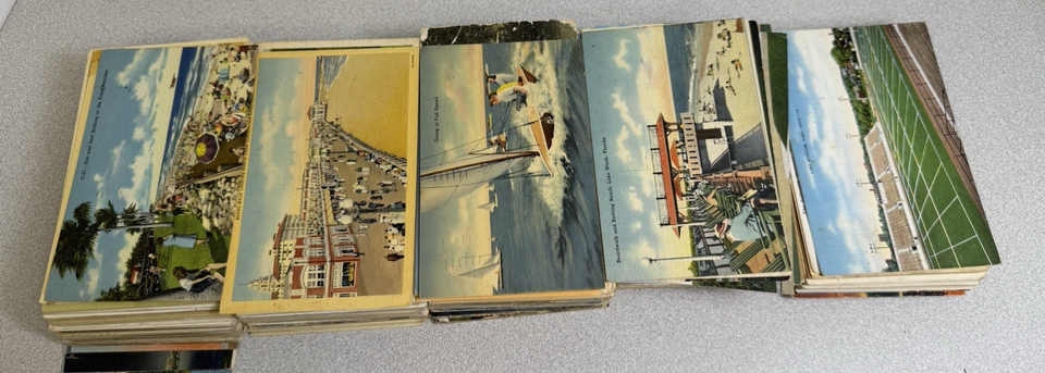 This vintage postcard lot consists 457 postcards from the early 1900s to 1960s, showcasing a wide variety of subjects , famous places, transportation, and more. Each postcard measures 3.5 by 5.5 inches and features a divided back design, making it a collectible item ideal for history enthusiasts and postcard collectors. The postcards originate from the United States and cover various regions, cities, and themes, providing a glimpse into the past with stamped and posted features.