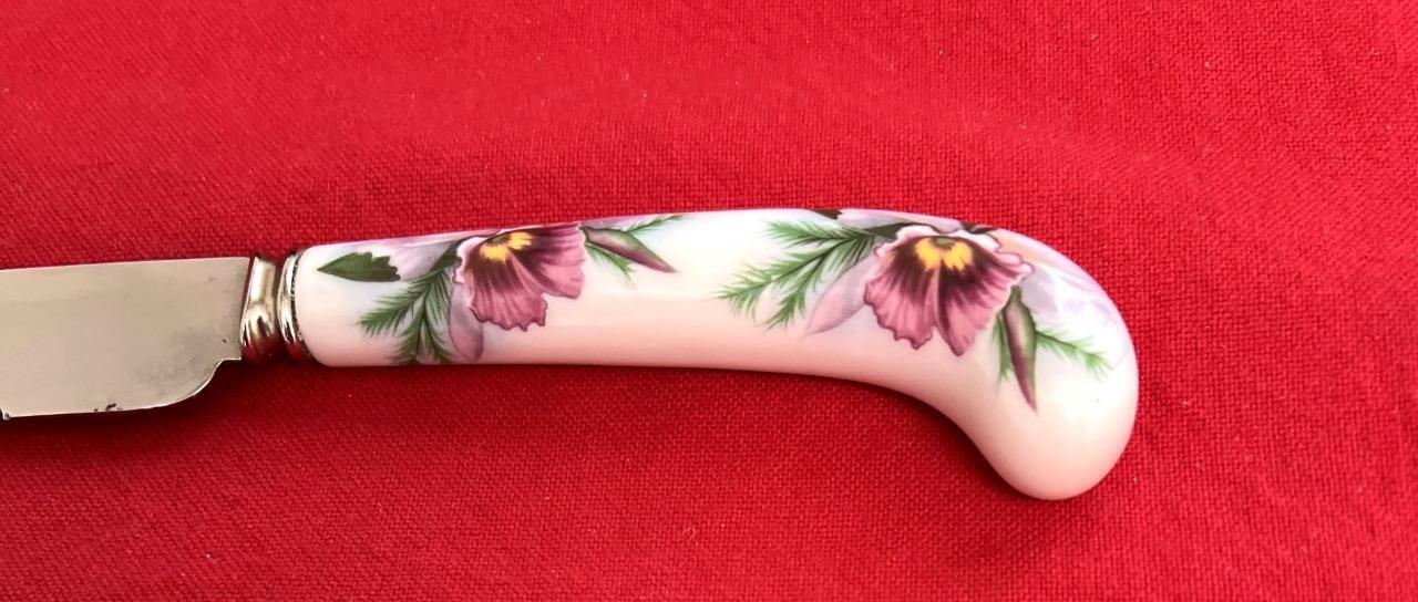 - Vintage Prill Sheffield Cake Knife w Flowered Porcelain Handle 12" England