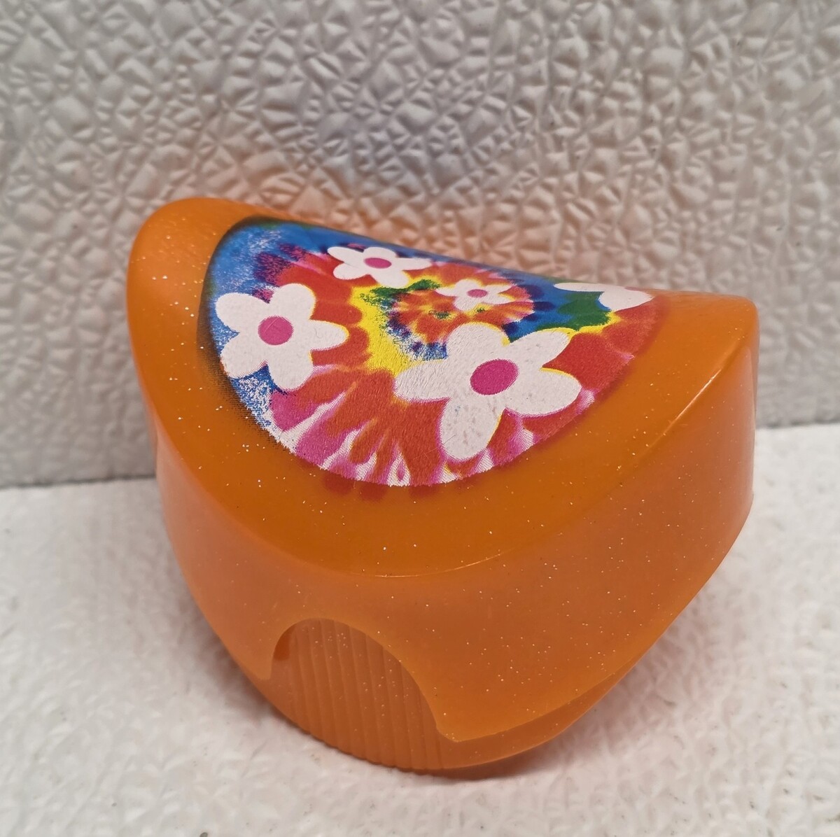 Vintage Pringles To Go Chip Holder Snack Container Orange Tie Dye Flowers. Images show actual item that will ship.
