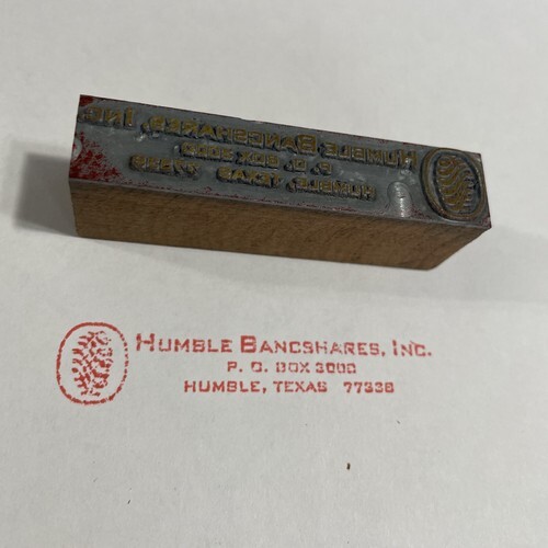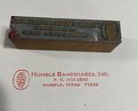- Vintage Printing Block Humble Bancshares Inc Humble TX 2 3/4x 5/8”