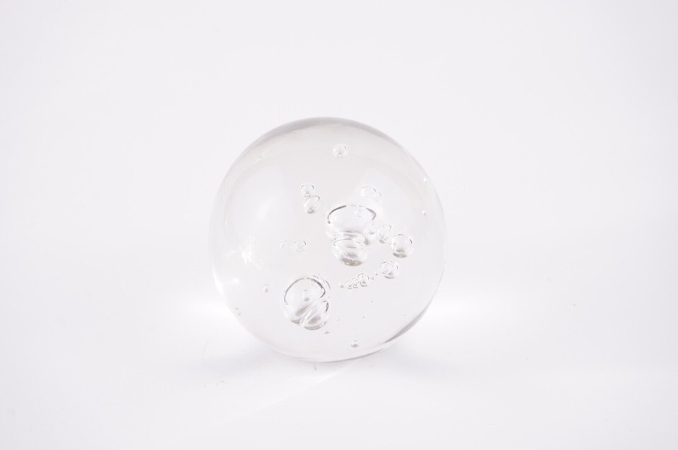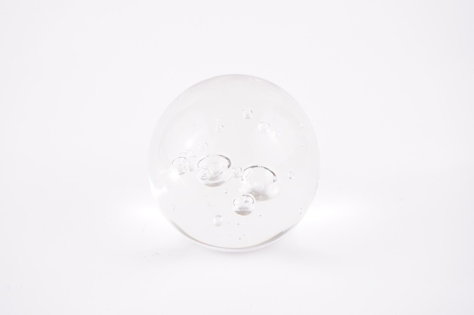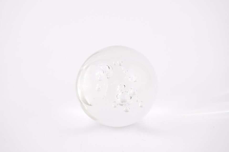 - VINTAGE PUKEBERG SWEDEN ART GLASS CLEAR PAPERWEIGHT WITH CONTROLLED BUBBLES