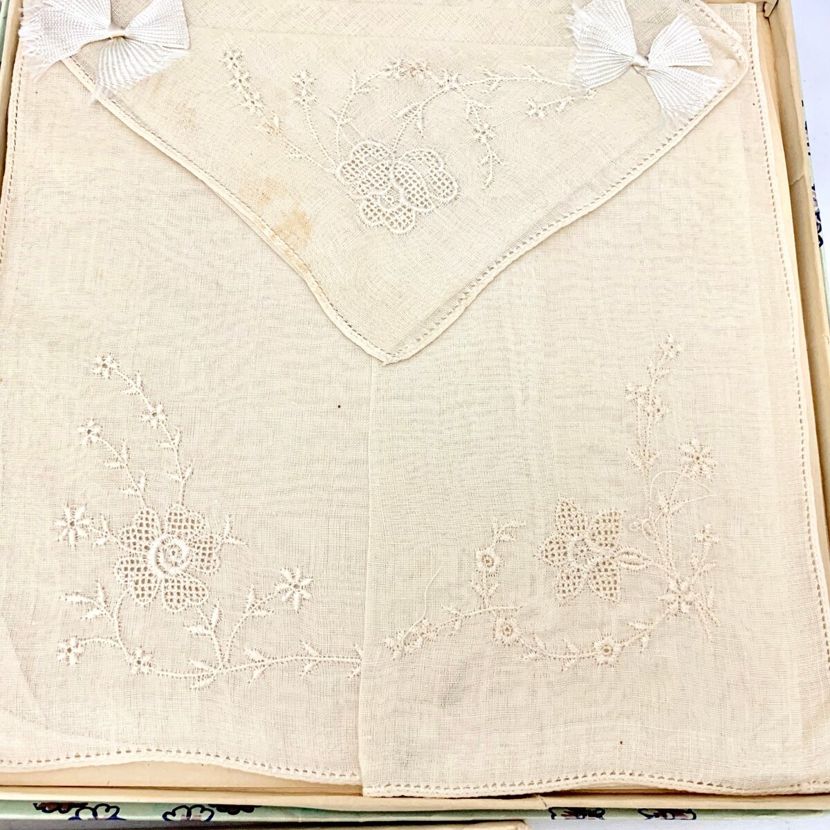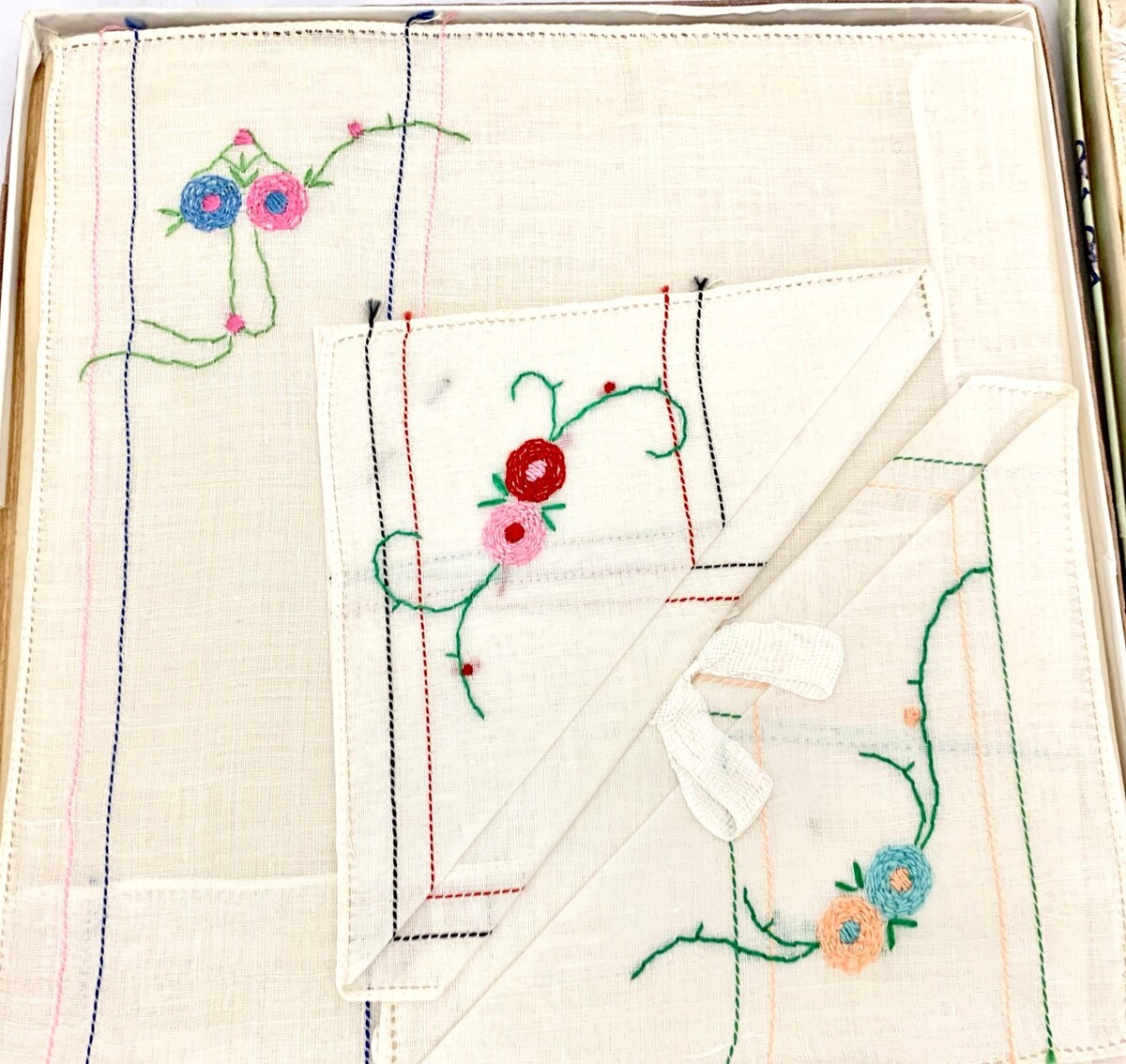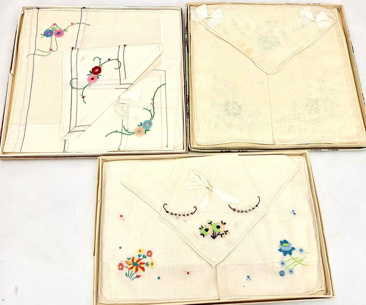 - Vintage RETRO Boxes (3) Gift Box Hankies 3 in Each Embroidered 1940s Great Gift