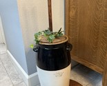 Bring a touch of American farmhouse history into your home with this beautiful 4-gallon butter churn from the iconic Robinson Ransbottom Pottery Co. of Roseville, Ohio. Glazed in their signature two-tone brown and cream with the classic crown stamp, this churn includes its original-style wooden lid and dasher?rarely found together today.