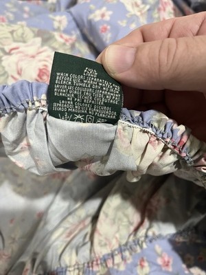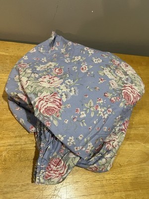 - Vintage Ralph Lauren Shelter Island Blue Full Fitted Sheet Cotton Rose Floral