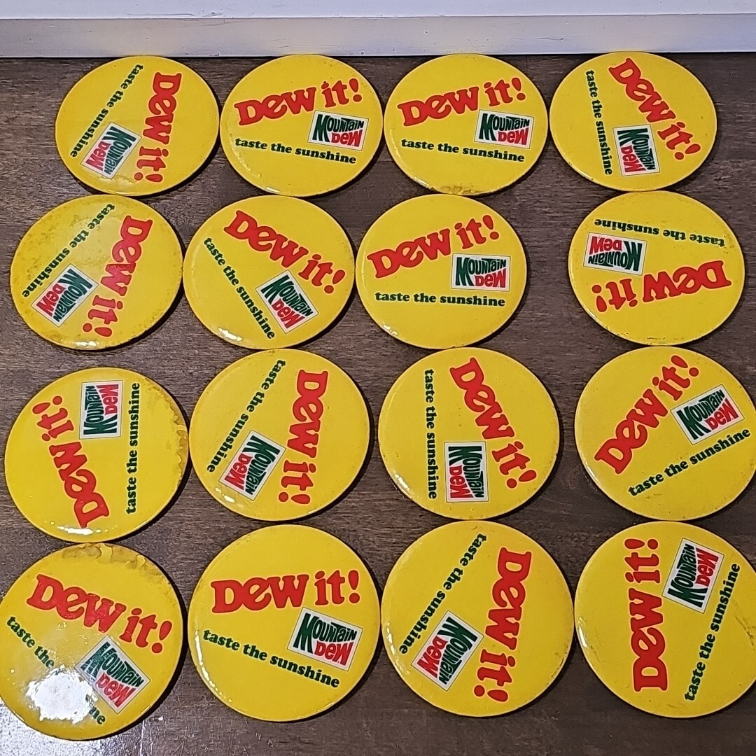 - Vintage Rare Mountain Dew Pin Back Button 4” Dew It! Taste The Sunshine * Read *