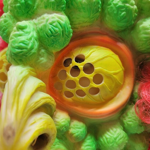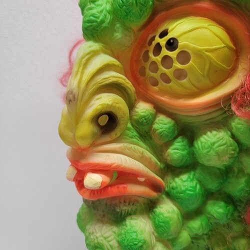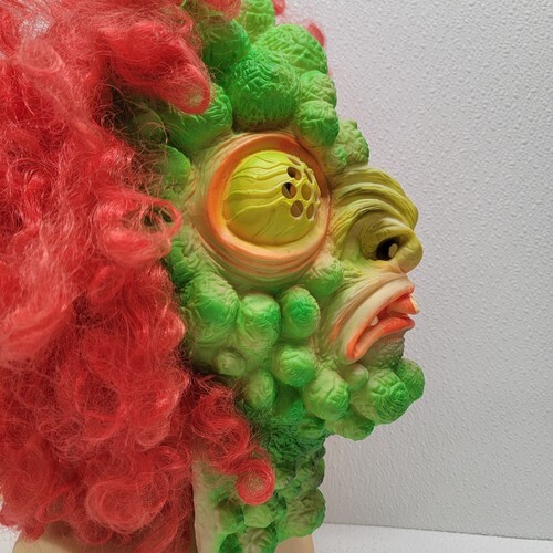 - Vintage Rare The Fly Monster Halloween Green Mask Red Hair Costume #9205
