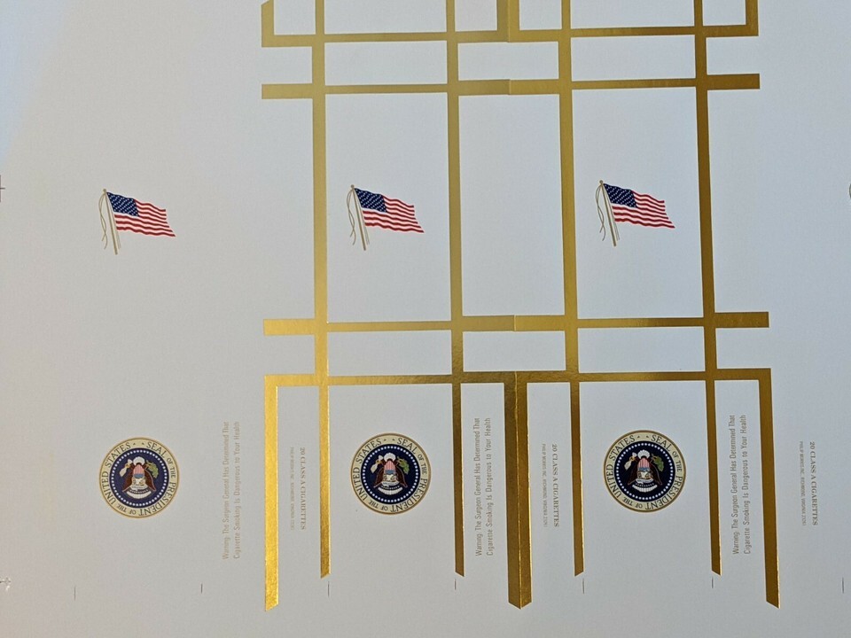 Zum Verkauf steht eine Vintage Reagan President Era Air Force One Zigarettenschachtel, ungeschnittenes Blatt.