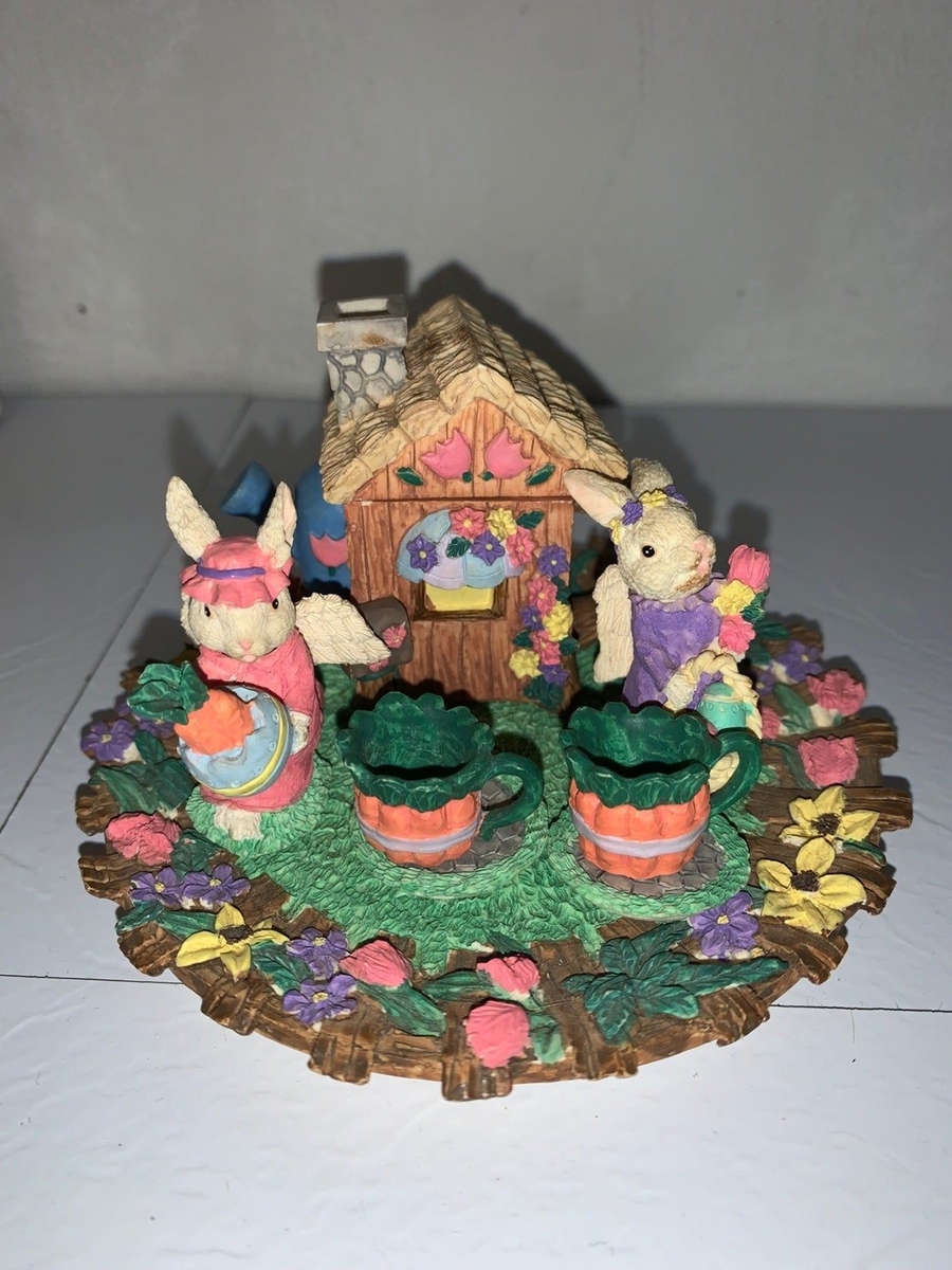 - Vintage Resin Easter Tea Set House Bunnies Mugs Carrots Easter Decor