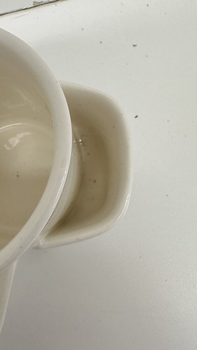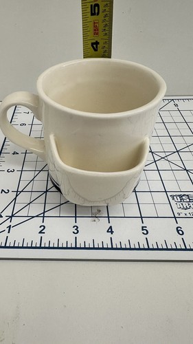 - Vintage Restaurant Ware 8oz Tea Cup Mug with Bag Holder White w/ Blue accents