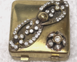 - Vintage Rhinestone Pillbox Pill Box w Velvet Inside 1 1/2 Sq