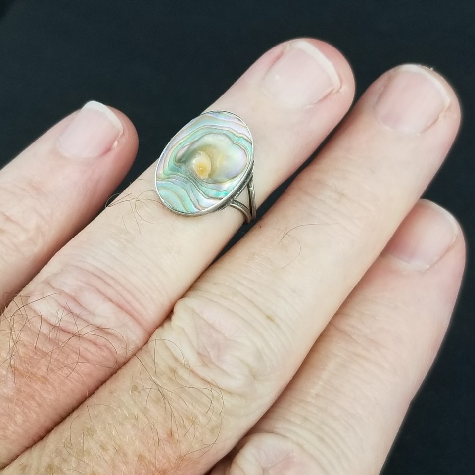AUTHENTIC ABALONE AND STERLING SILVER RING.