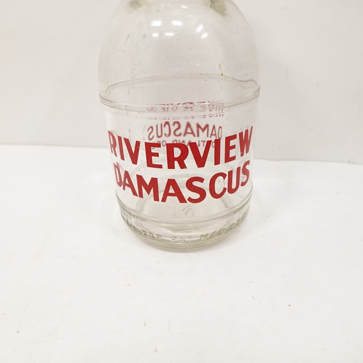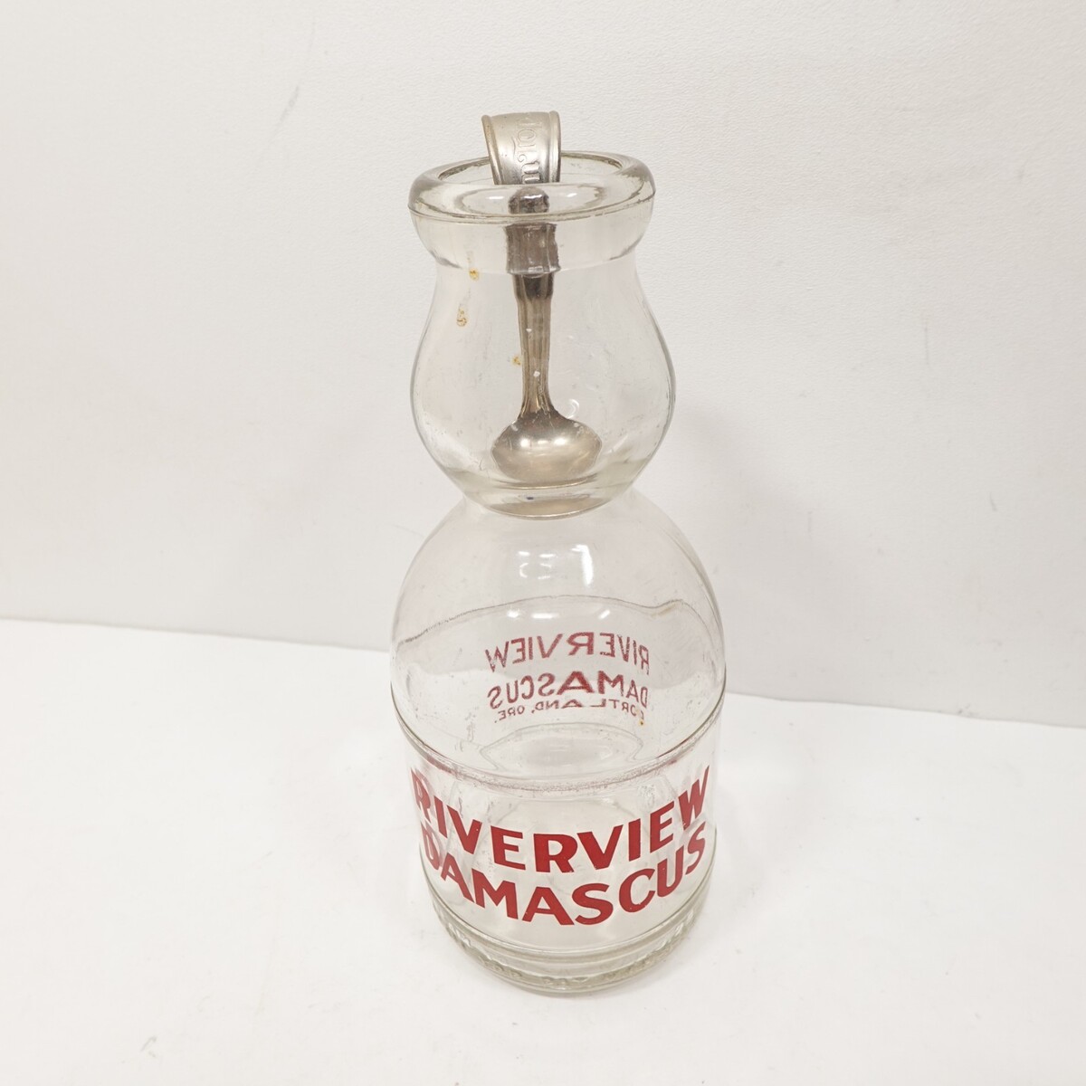 - Vintage Riverview Damascus Portland OR Cream Top Milk Bottle w/ Spoon 10"