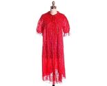 - Vintage Robe Cherry Red Silver Lace Nylon Chiffon Bust 40 1950s