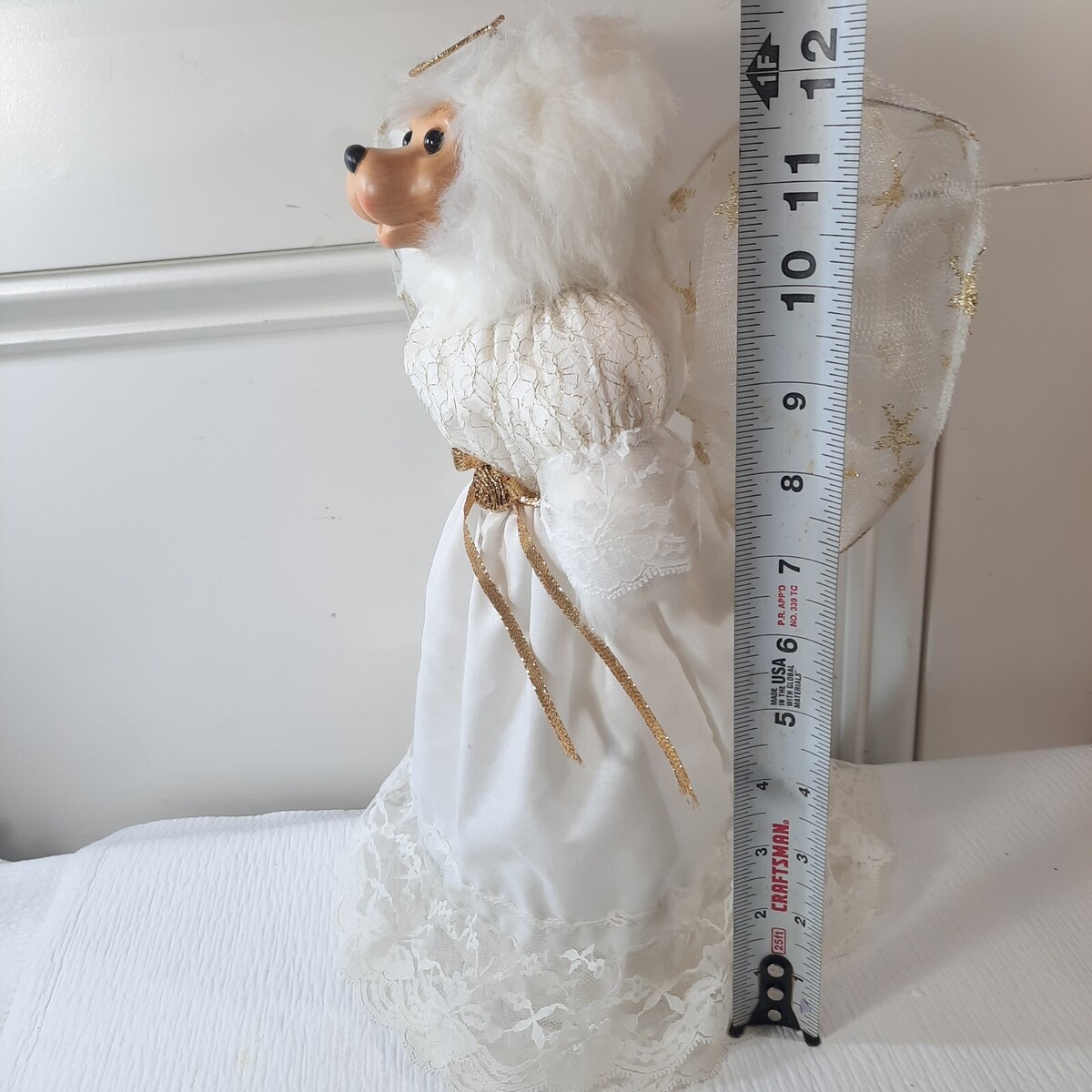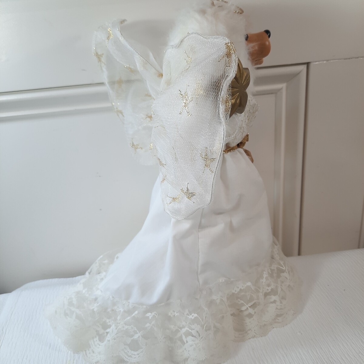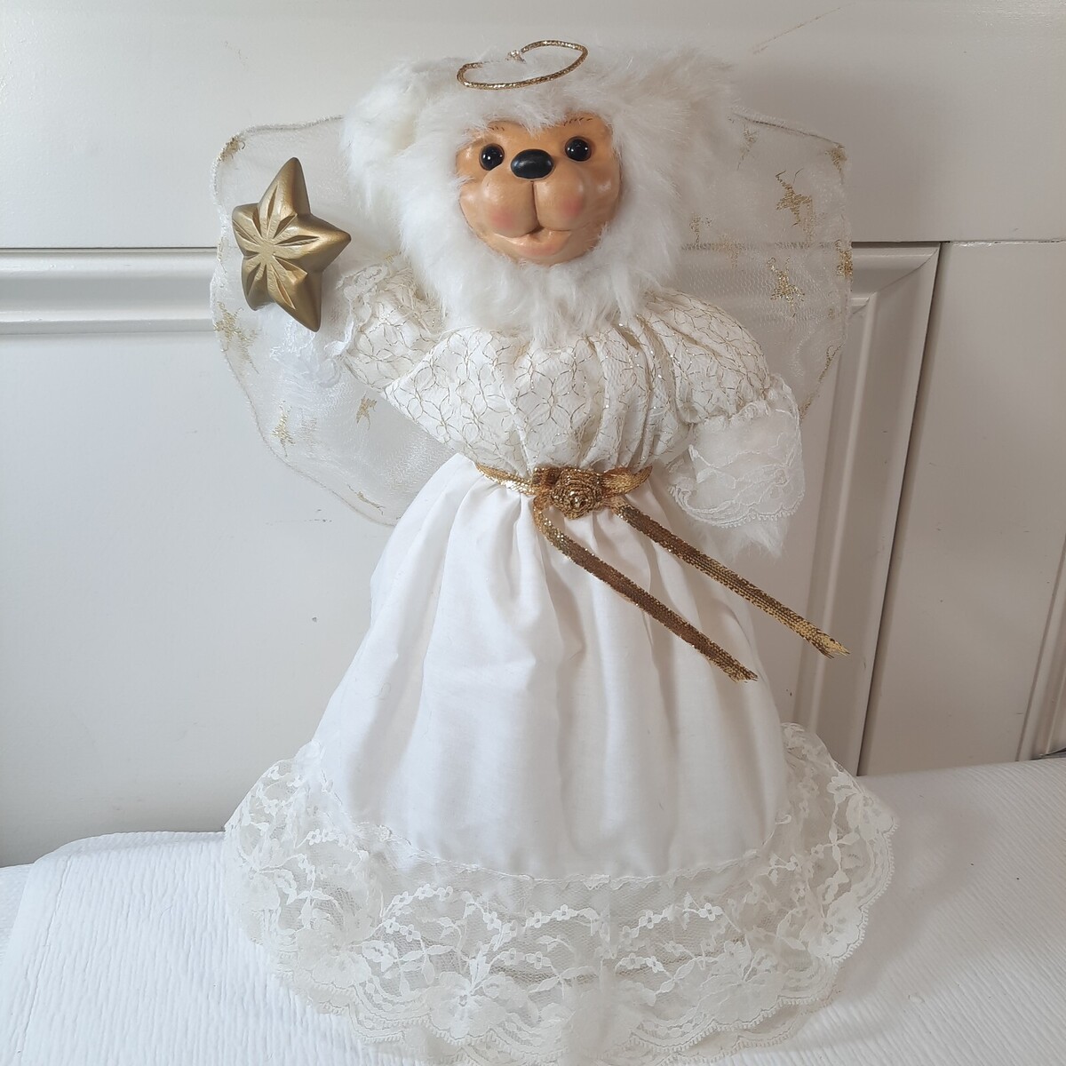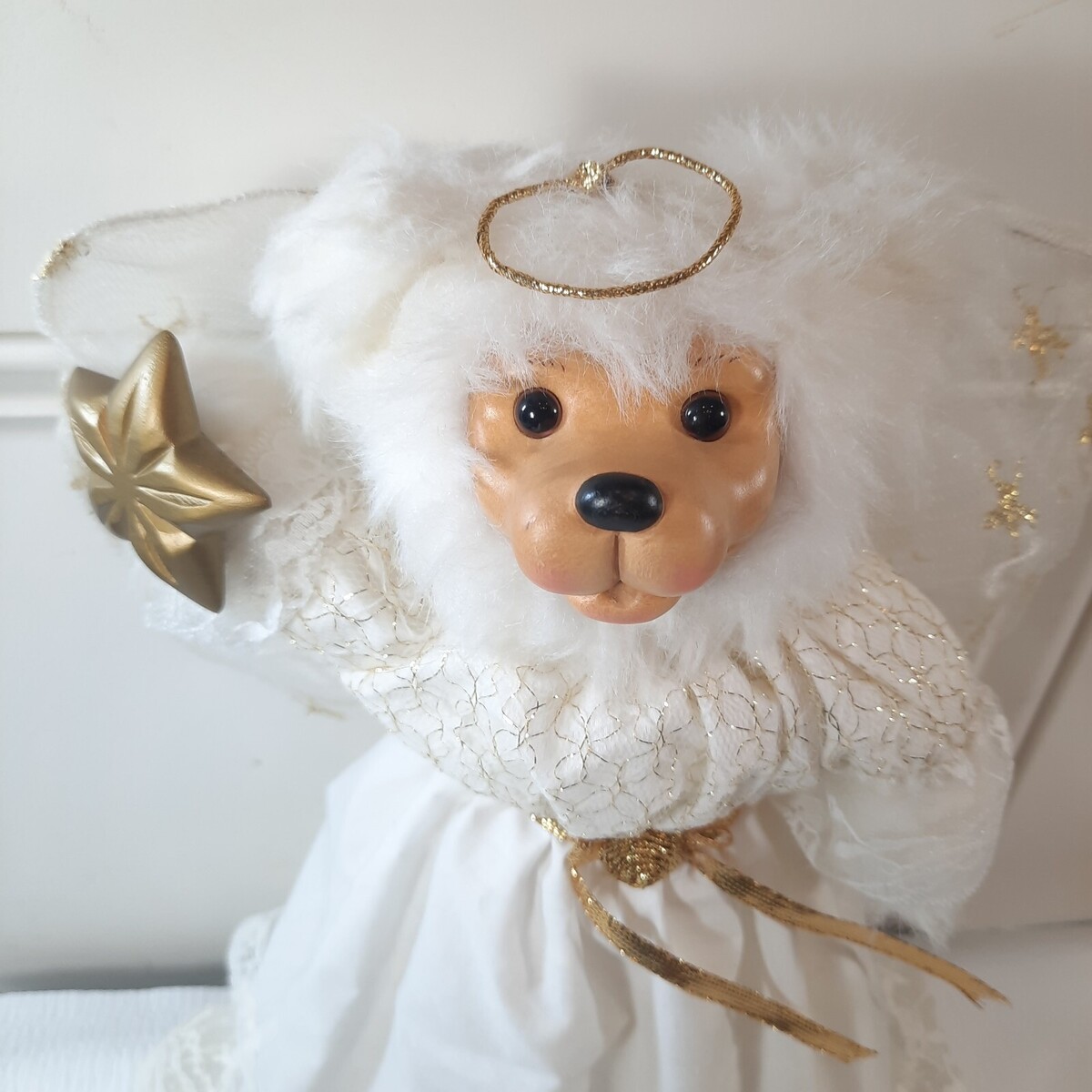 - Vintage Robert Raikes Angela Angel Bear Christmas Tree Topper white gold star