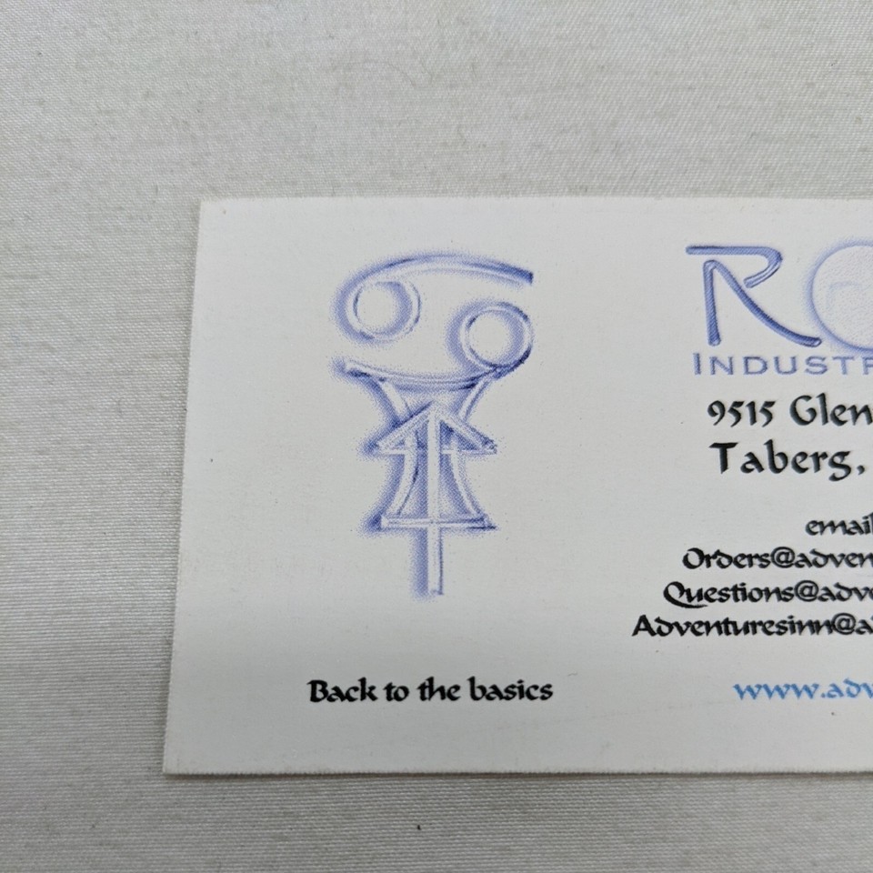 Vintage Roc Industries Talberg NY Business Card Adventures In Fantasy. Combined Shipping (for USA Customers Only)