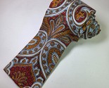 - Vintage Rooster Flat Tip Tie Paisley Red Gold White Hand Printed USA 3.25"