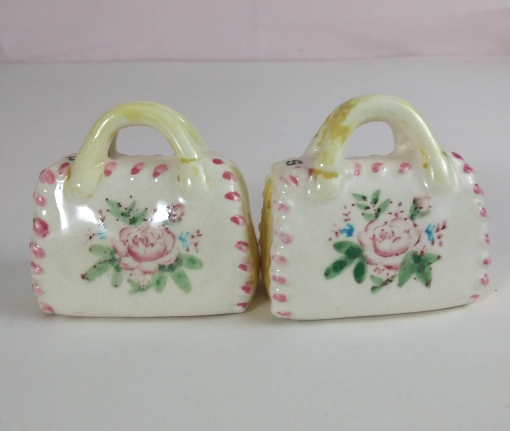 - Vintage Rose Floral Purse Handbag Ceramic Salt & Pepper Shakers Japan