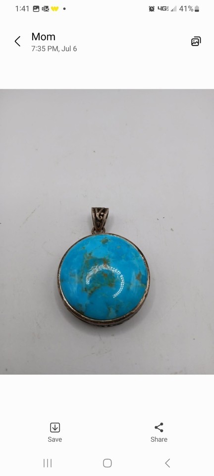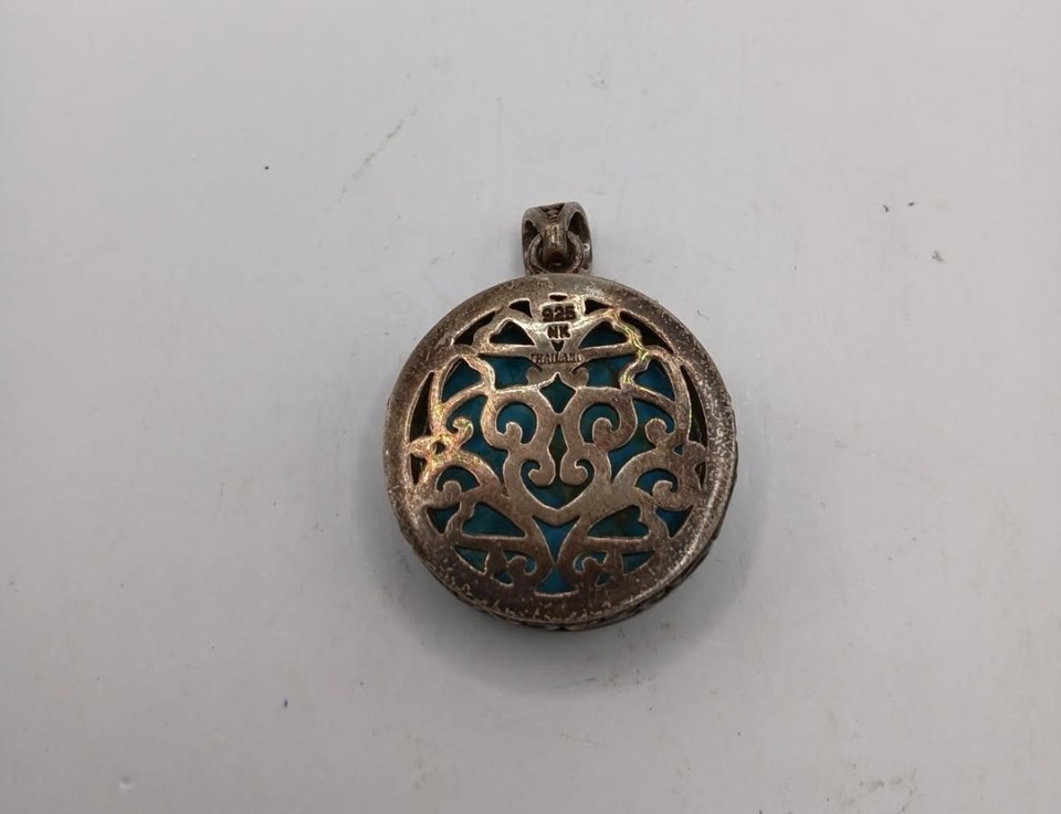 Vintage Round Turquoise Pendant stamped 925 NK Thailand